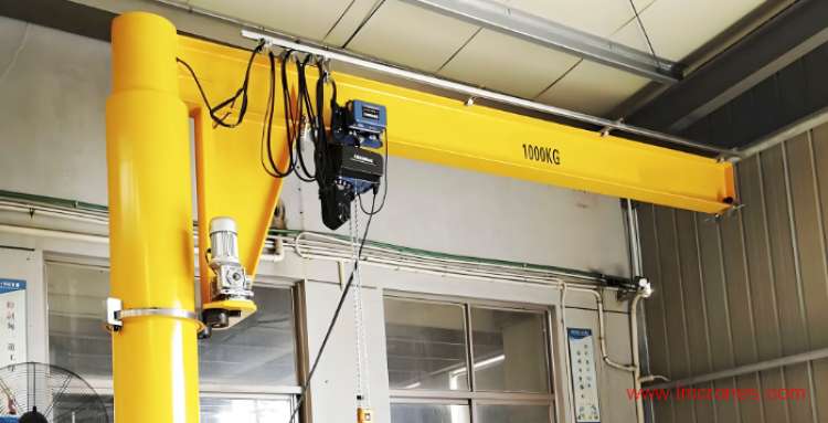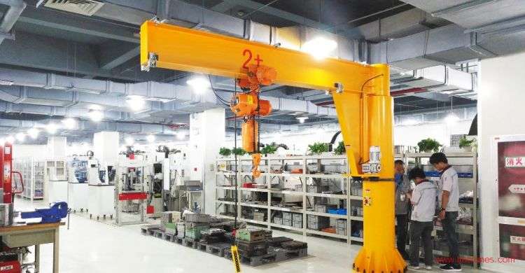 懸臂吊的工作原理。它通過旋轉電機驅動懸臂旋轉,環鏈葫蘆電動小車橫移,環鏈葫蘆上升下降起重作業,覆蓋圓形作業區間。操作人員可以通過控制器或遙控器對電動