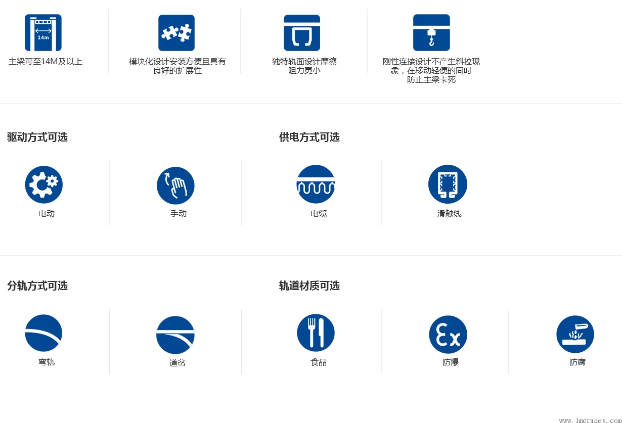 軌道封閉式設計,可有效避免灰塵進入,從而減少小車車輪磨損,延長使用壽命,軌道一次冷軋成型,無焊接,強度高