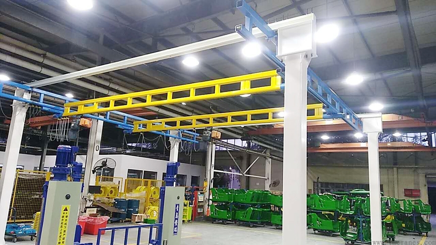 起重機規范組件構成,其特色有自重輕、構造尺度合理,別的,柔性可搖擺軌跡懸掛設備可有用吸收