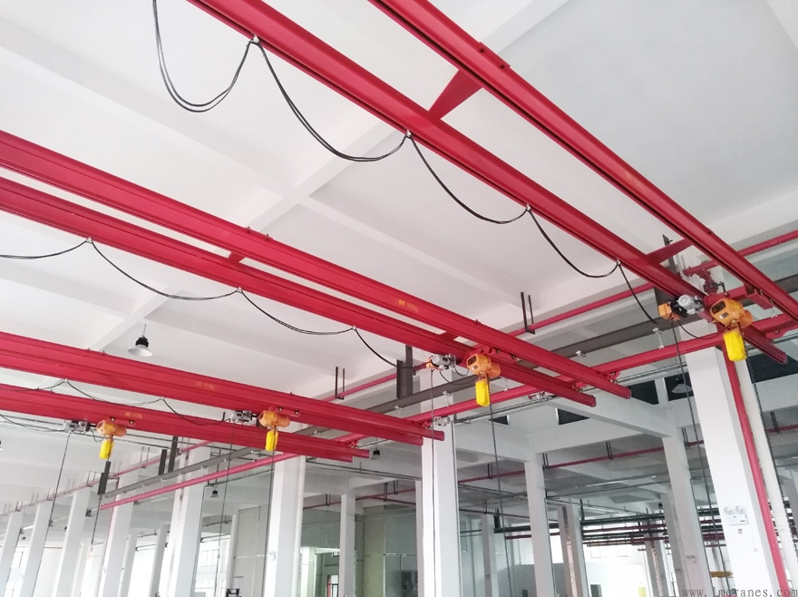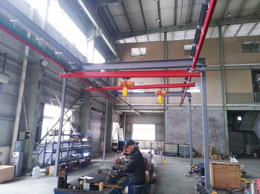 KBK單軌中運行。雙梁與環鏈葫蘆配套使用,電葫蘆運行小車可以順著承重梁方向運行。