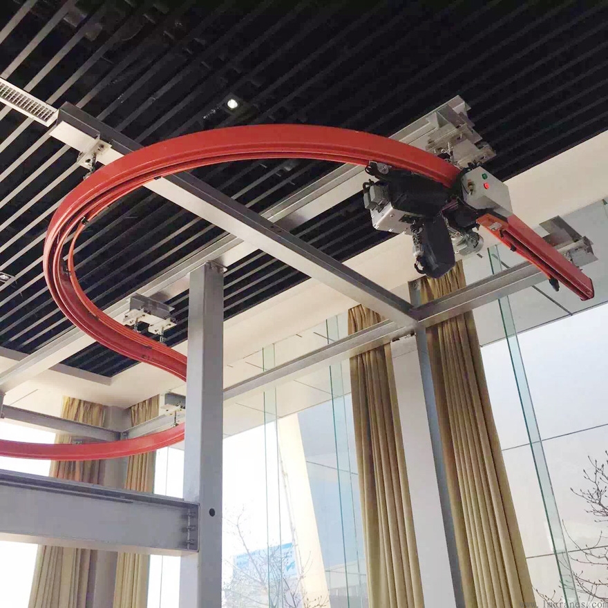彎軌與岔道軌道配套使用可靈活變換起吊物件的方向,這種產品用平面物流輸送,適合于車間倉庫等場地。起重由于采用了雙軌道平行式組合梁增加了主梁的承載能力,因此可適用于較大的跨度和較重物料的搬運!